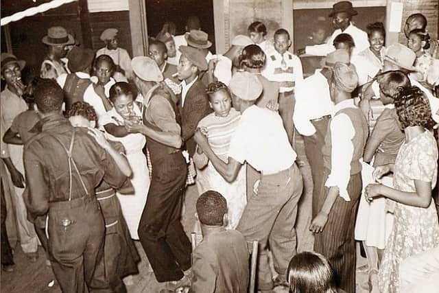 Young African Americans dancing in a juke joint in Mississippi from unknown source