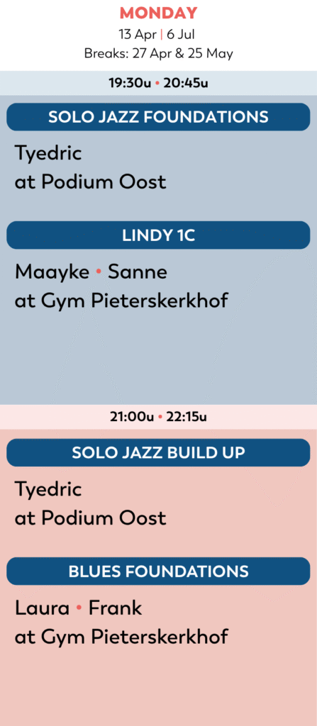 If you’re new to dancing or Swing dancing, it’s always best to start at Lindy 1A. But if you come from another scene with a different leveling system you can come to one of our socials and do a small audition.